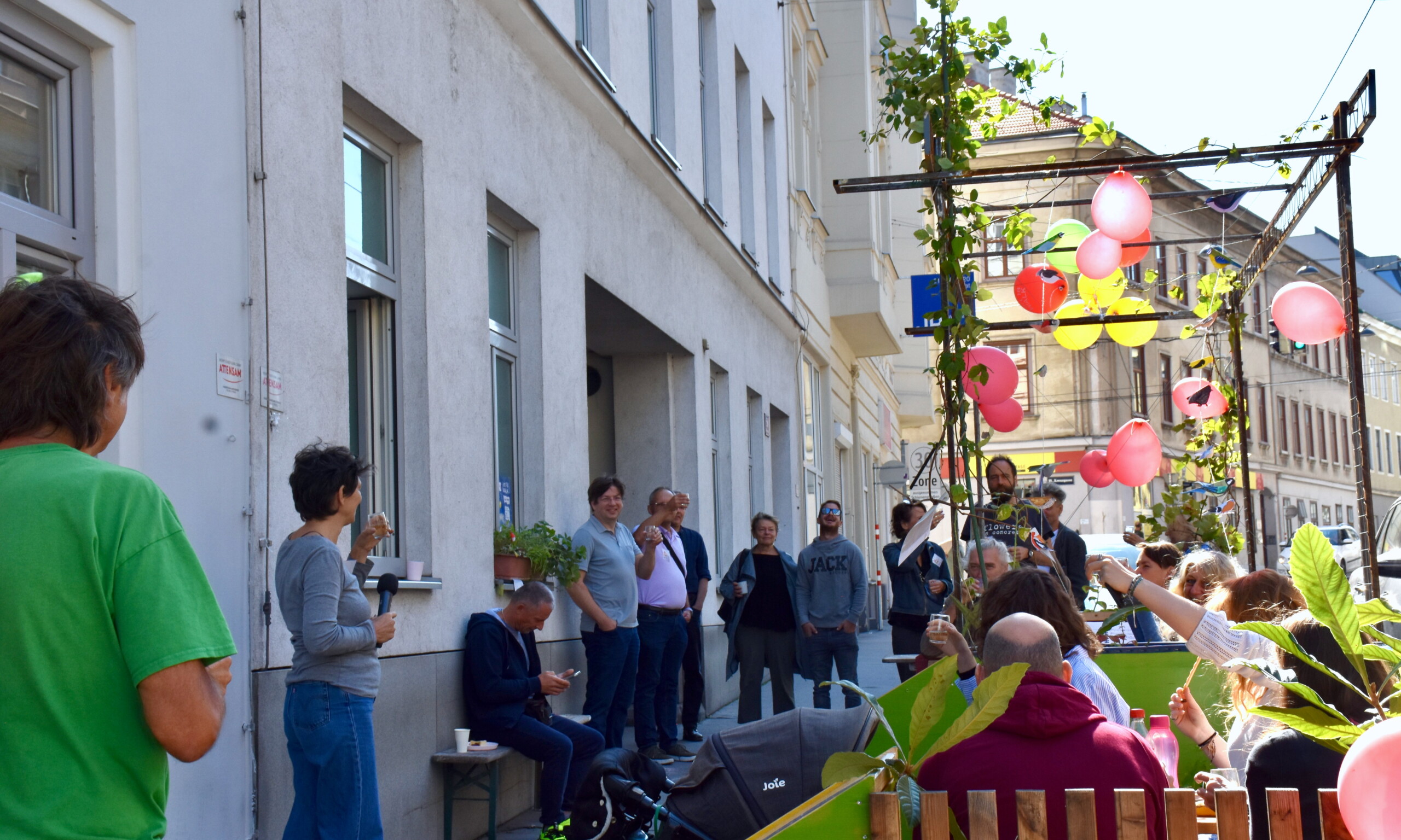 Grätzloasen (auch Parklets genannt) gibt es in Währing schon seit Jahren, und das Bedürfnis nach mehr ist vielerorts spürbar. Auf der Straße, wo sonst Autos stehen, ermöglichen sie Begegnung, stärken die Nachbarschaft, fördern Kommunikation und Kreativität. Individuell liebevoll entworfen, oft in Eigenregie gemeinschaftlich gebaut, mit Sitzgelegenheiten und meist ganzjährig begrünt, stehen sie nicht nur der Nachbarschaft zur Verfügung, sondern jedem und jeder, die vorbeikommt, sich hinsetzen und Rast machen möchte.